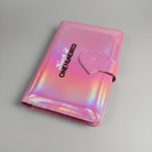 Inside you'll find 100 numbered clear envelope sleeves, one for every step of the challenge, plus a pocket to hold your tracking insert so you can see your progress in real time. The holographic cover catches every light in the room because building wealth should look good while you do it.